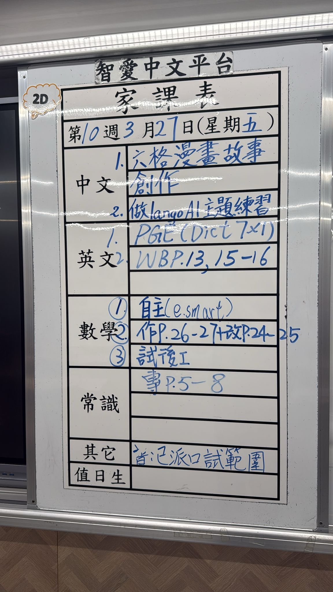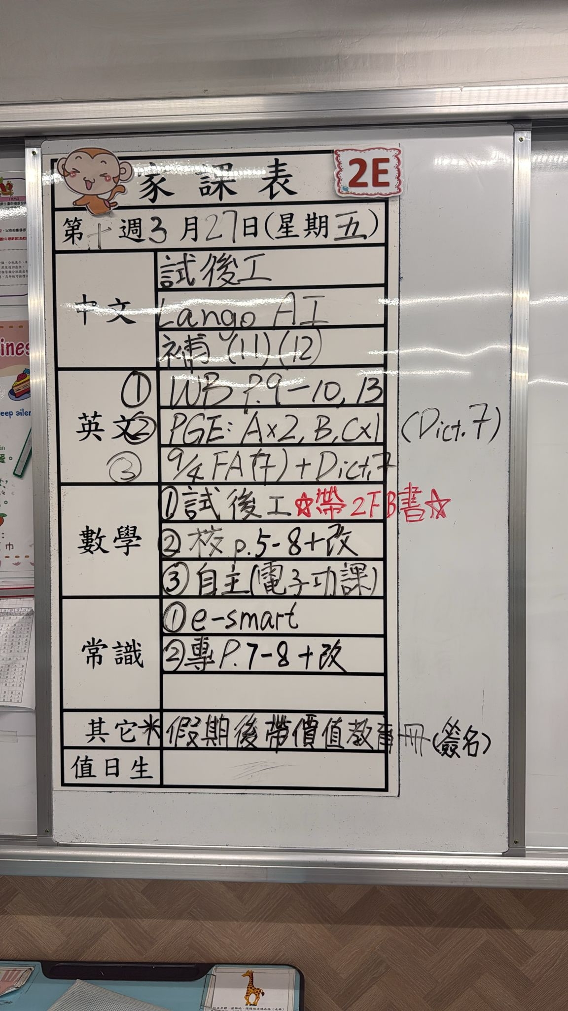 2026-03-27 週五發出之家課: