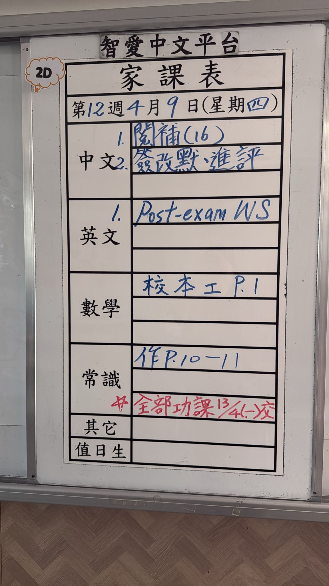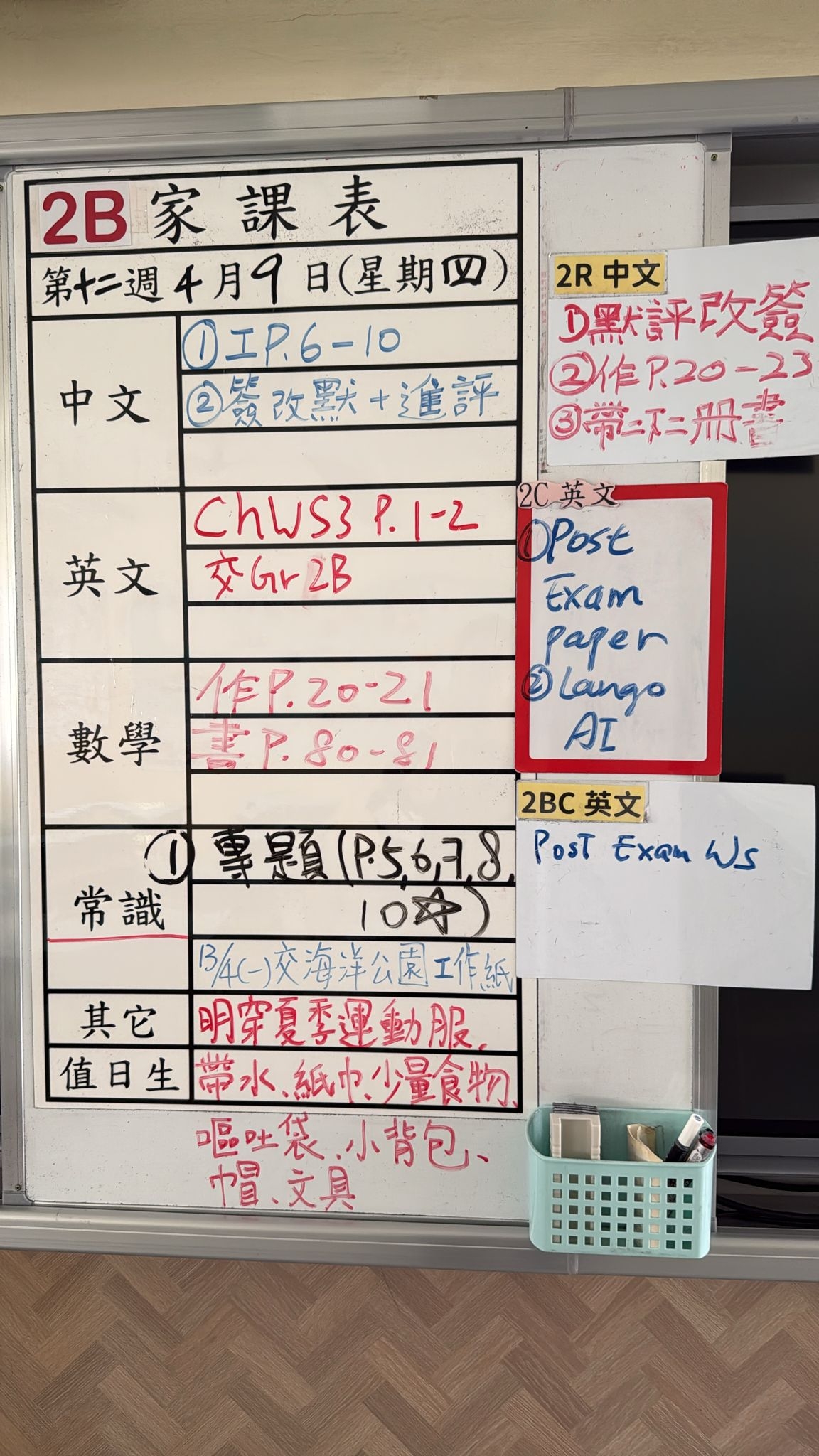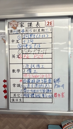 2026-04-09 週四發出之家課: