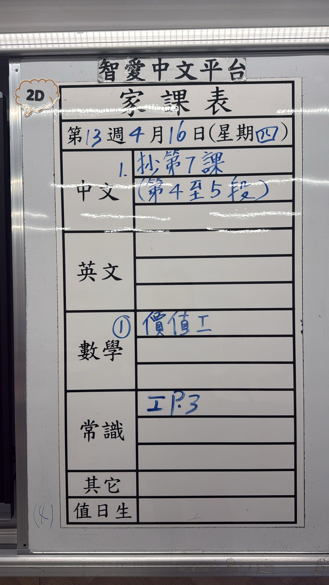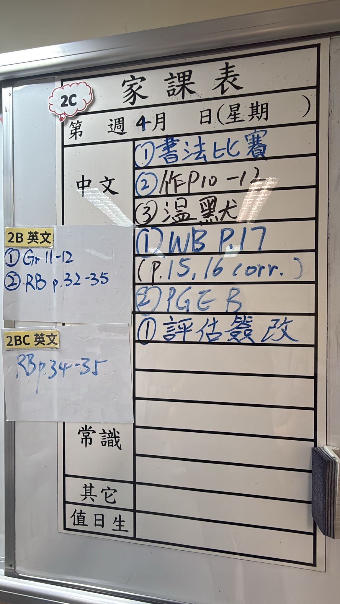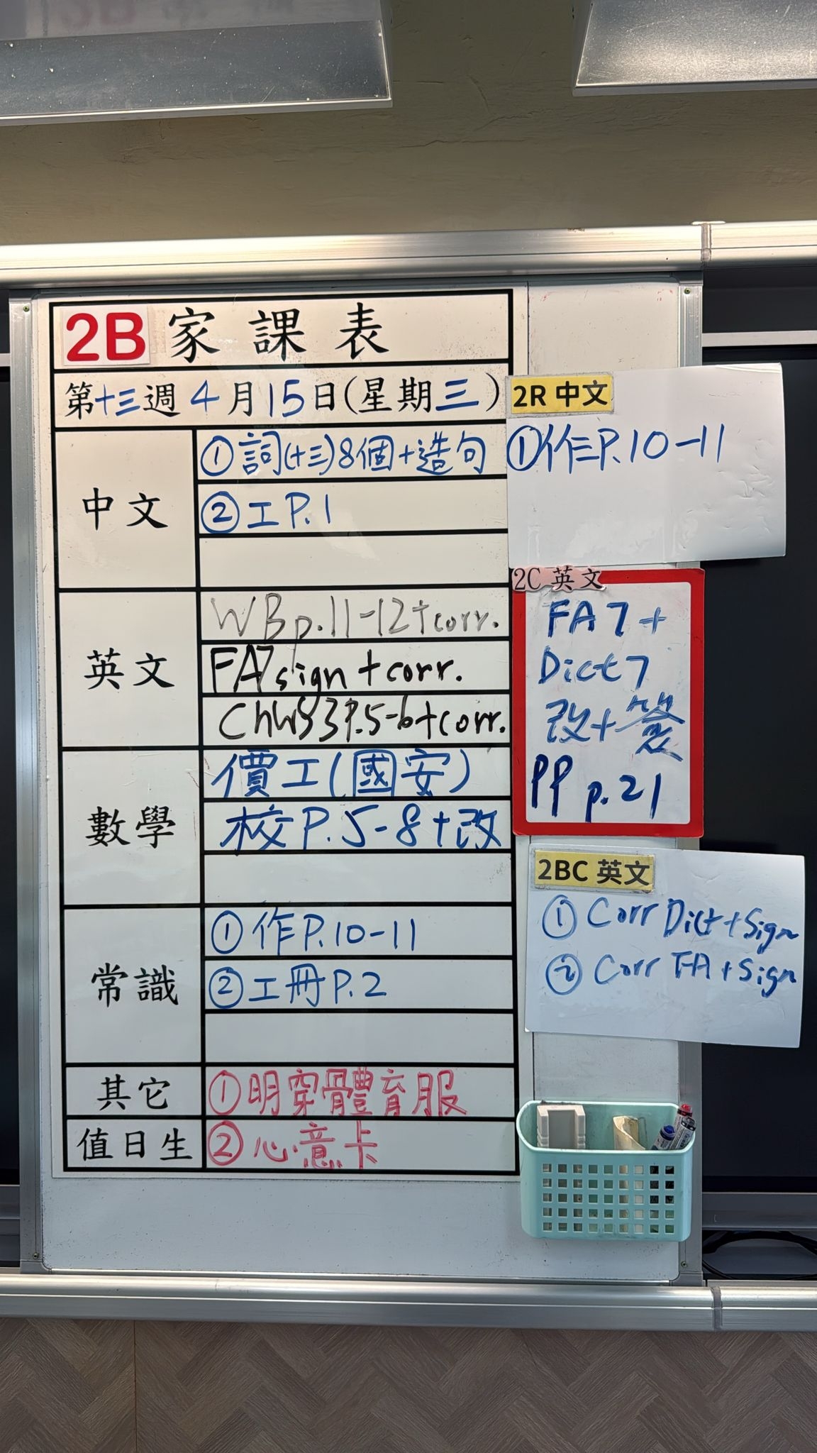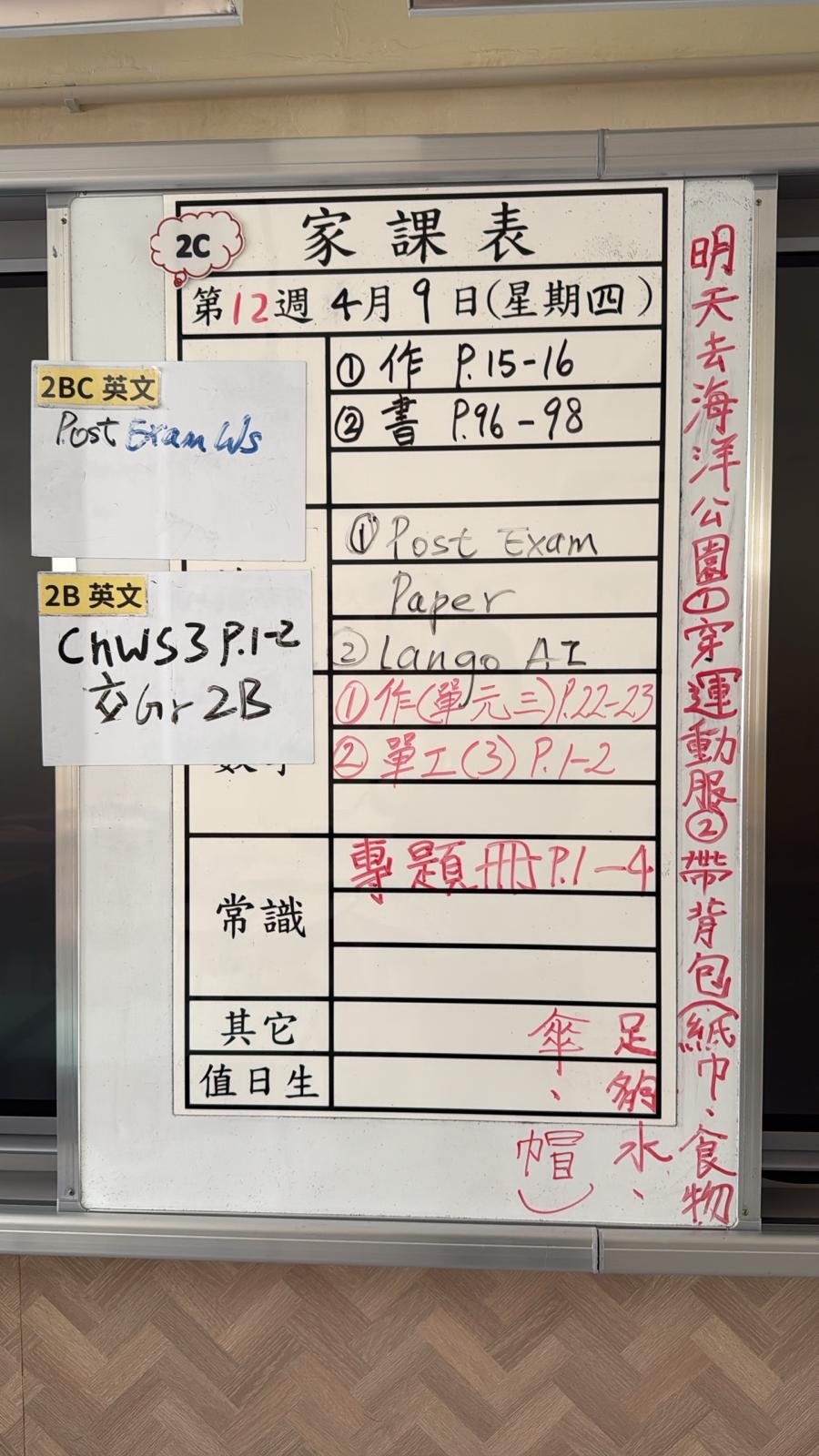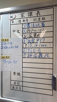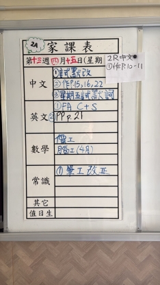 2026-04-15 週三發出之家課: