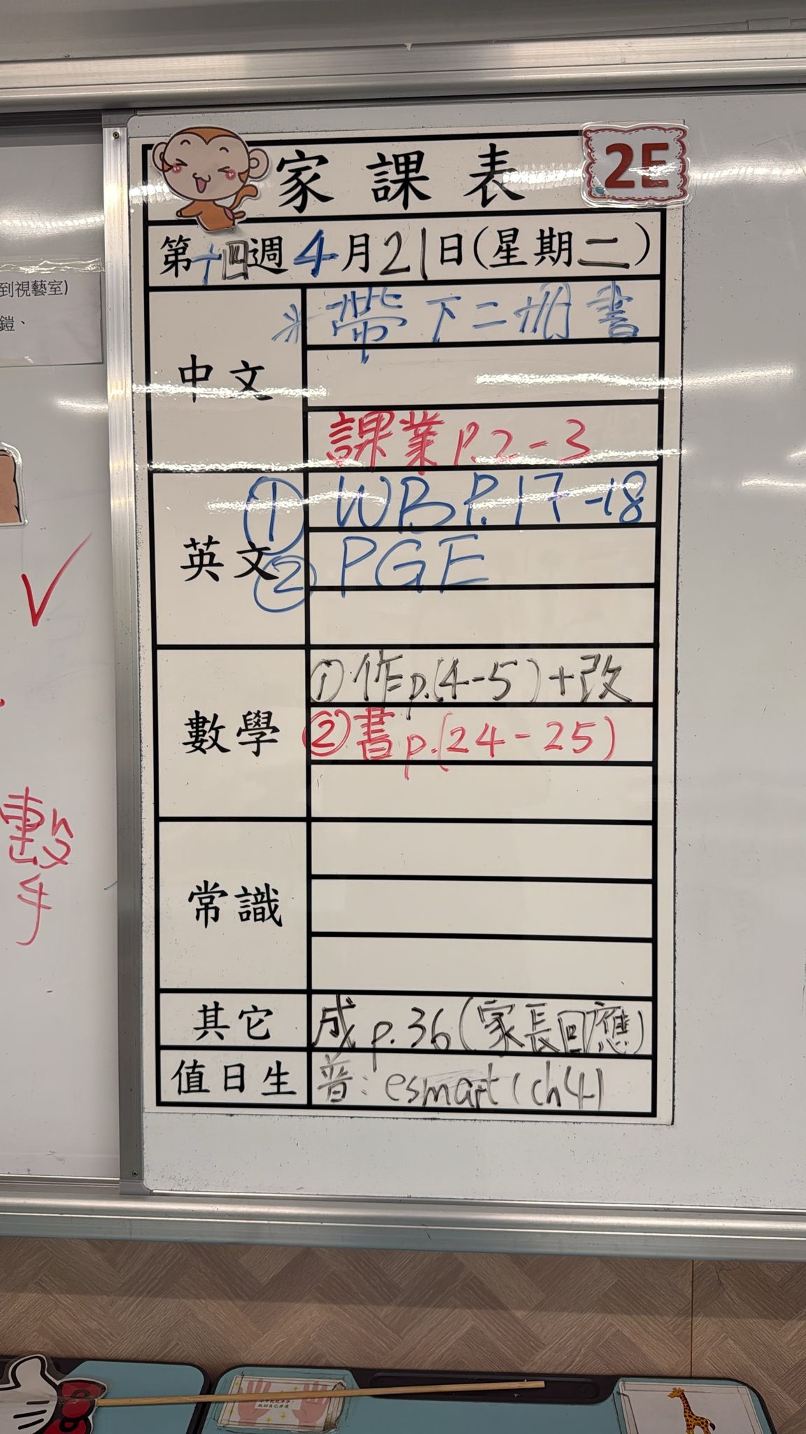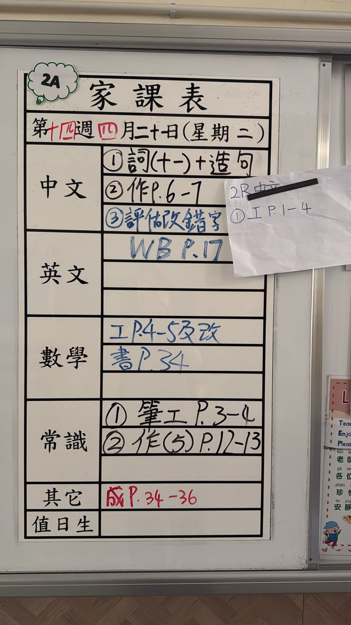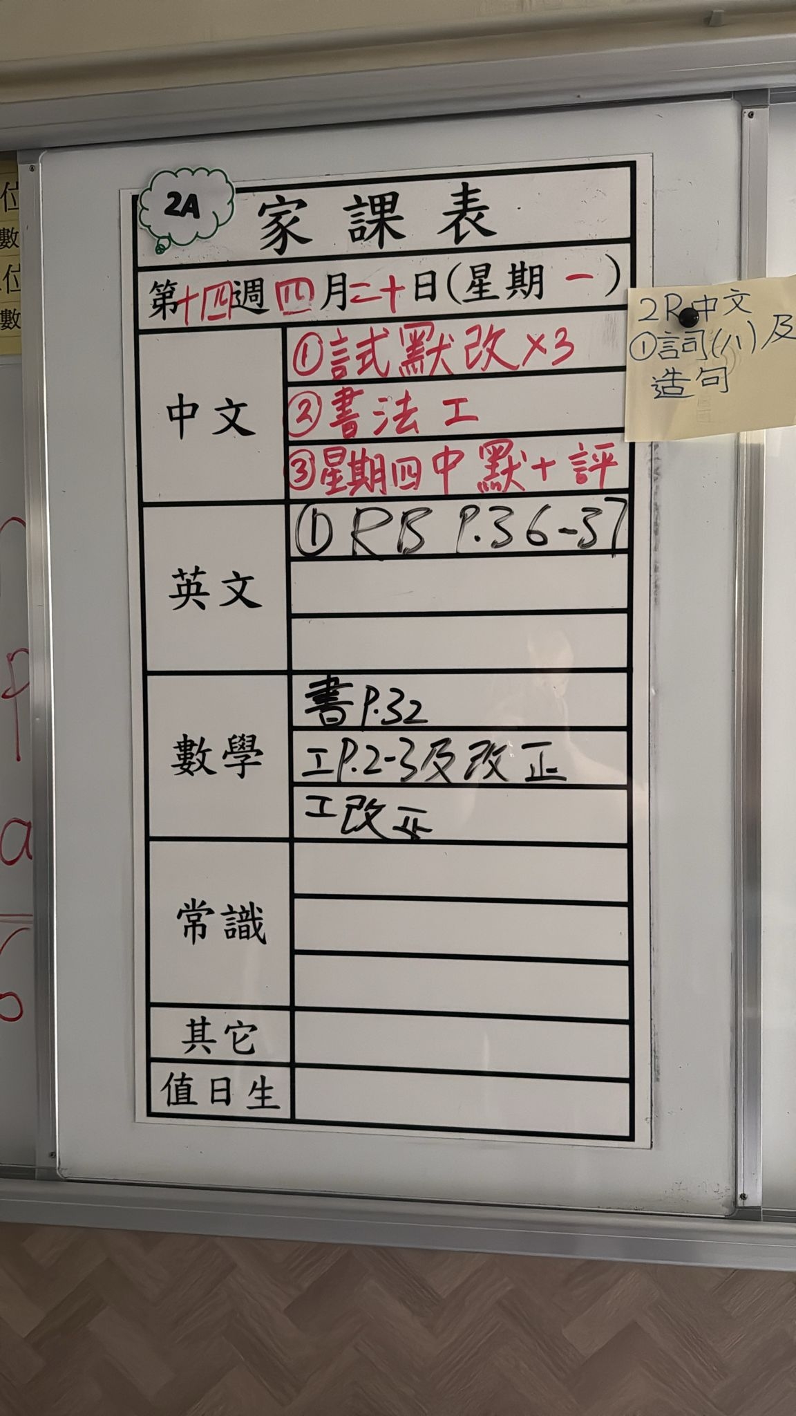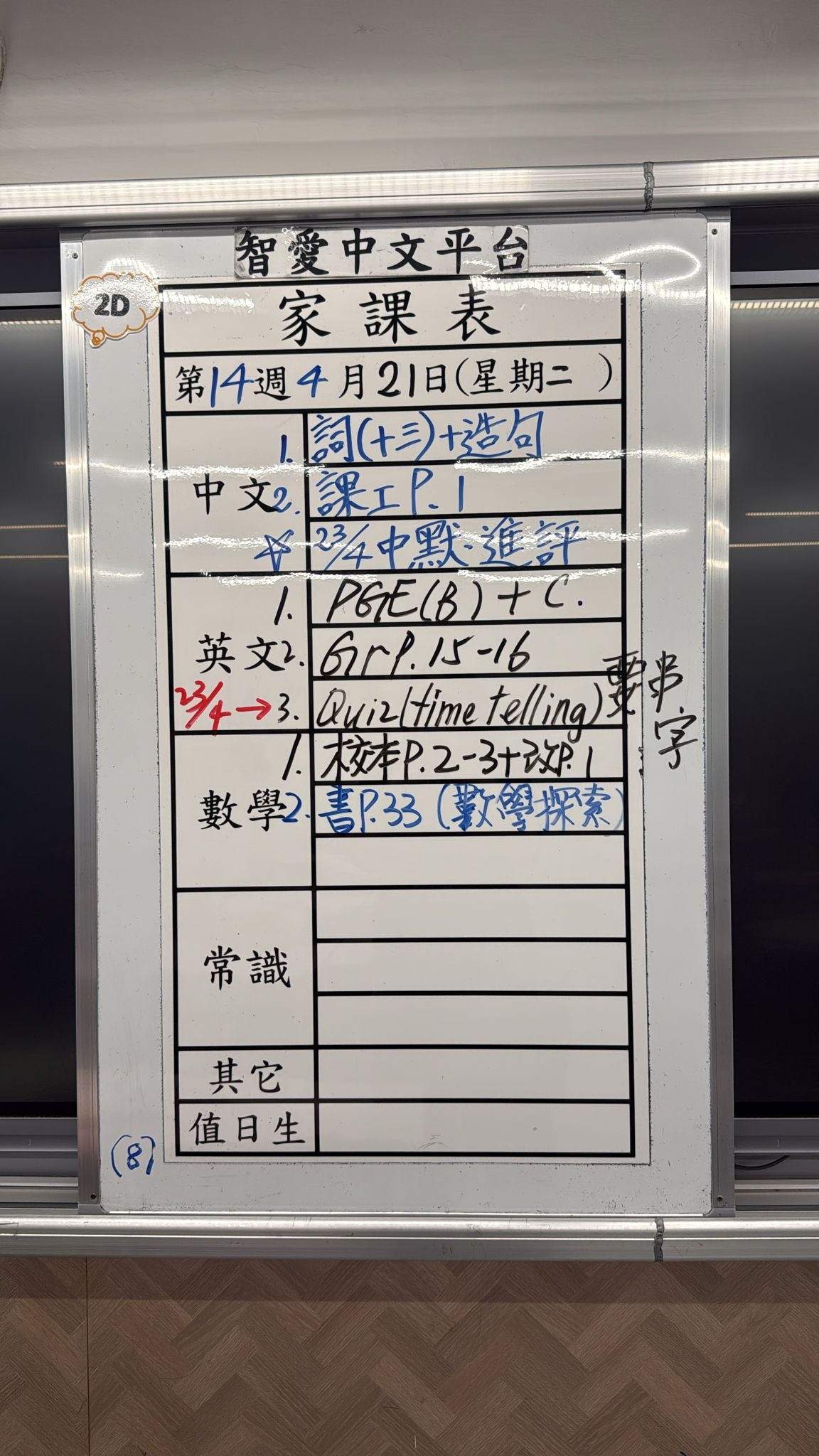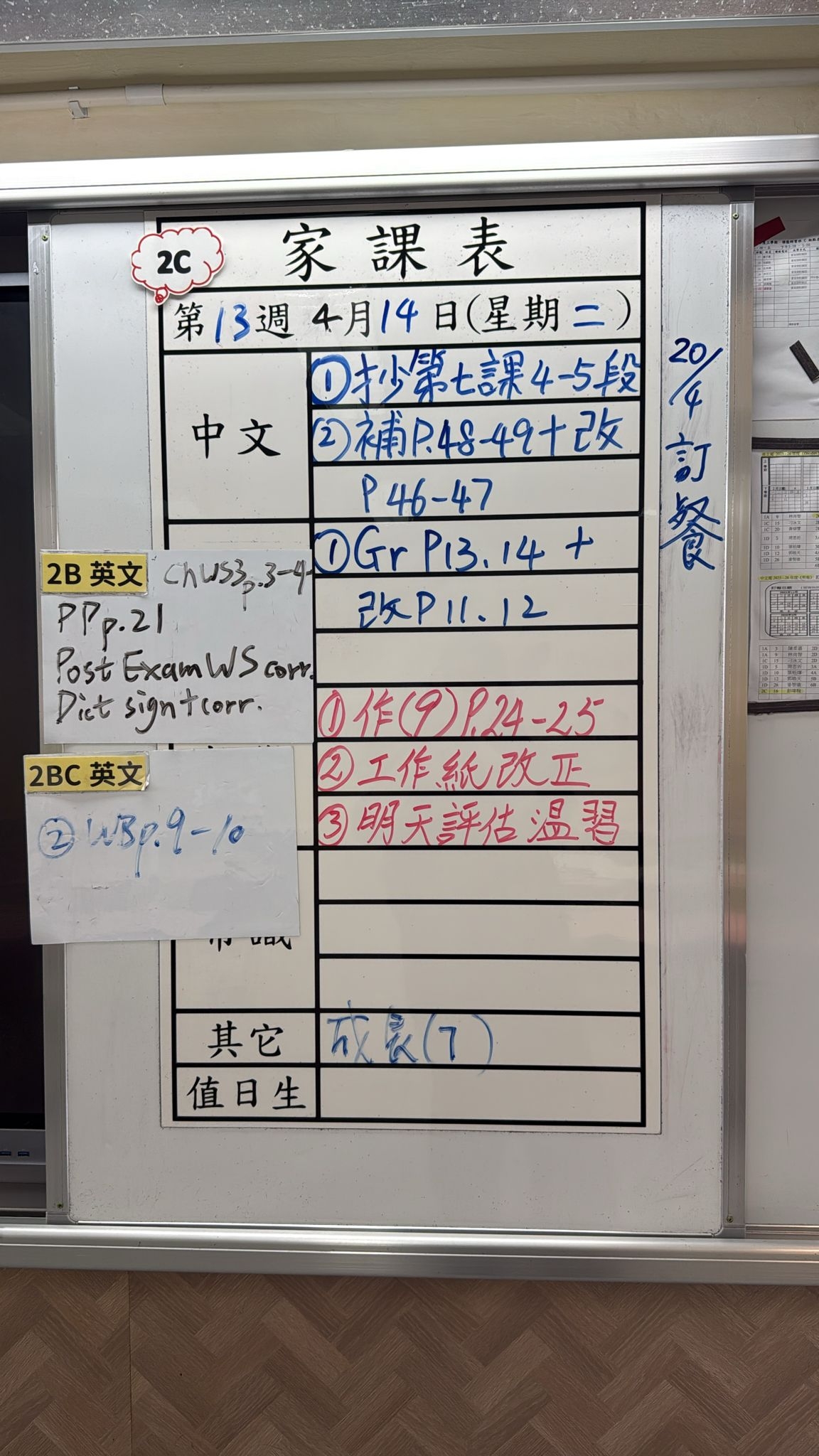 2026-04-14 週二發出之家課: