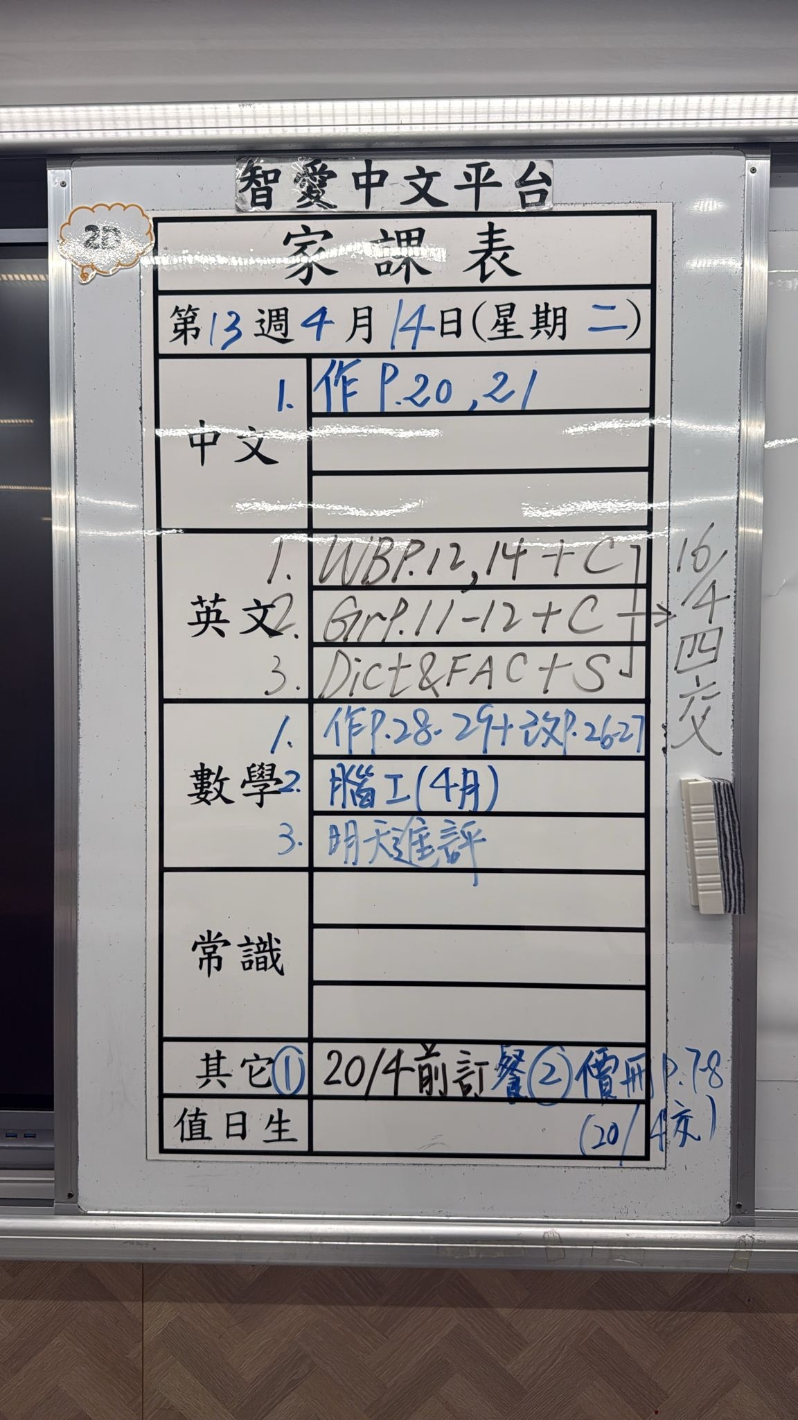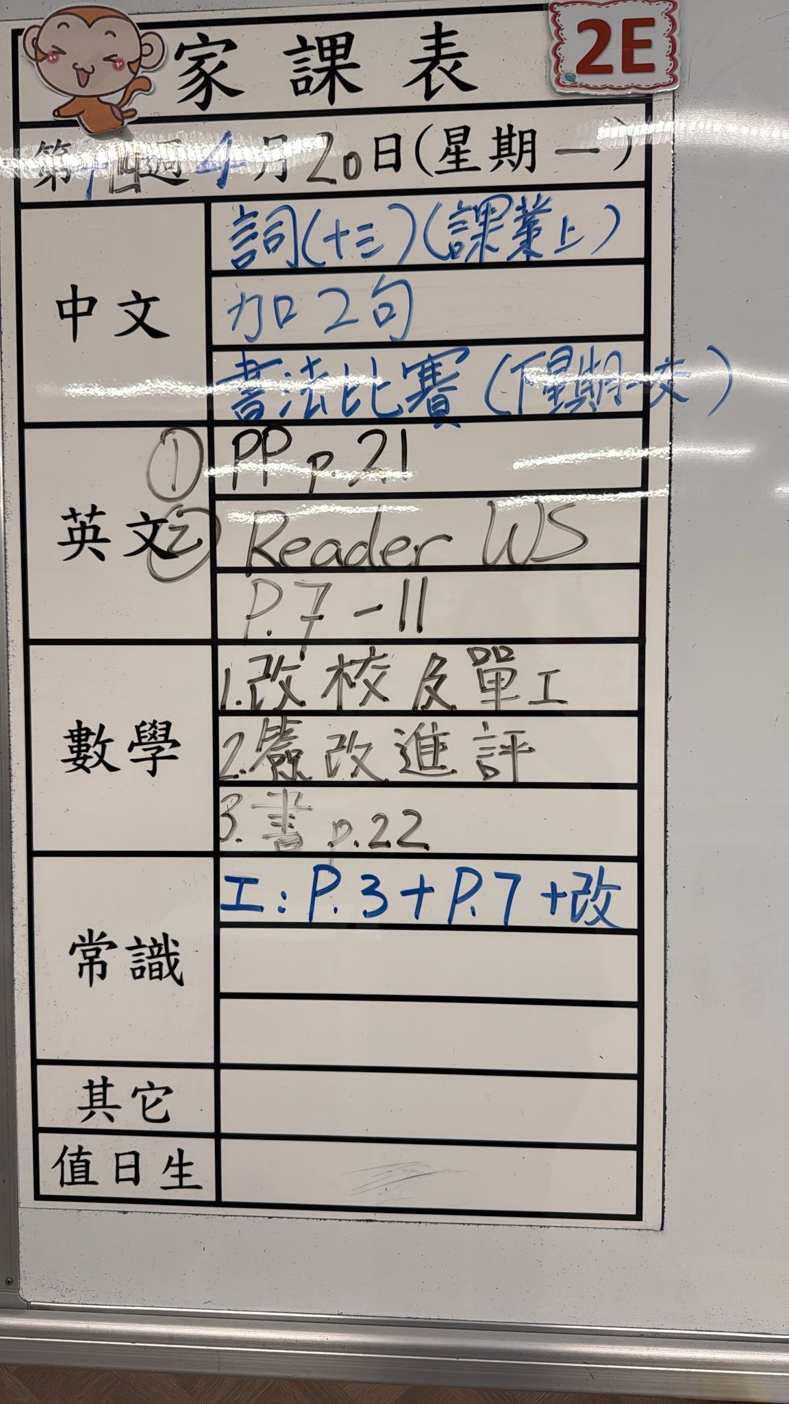 2026-04-20 週一發出之家課: