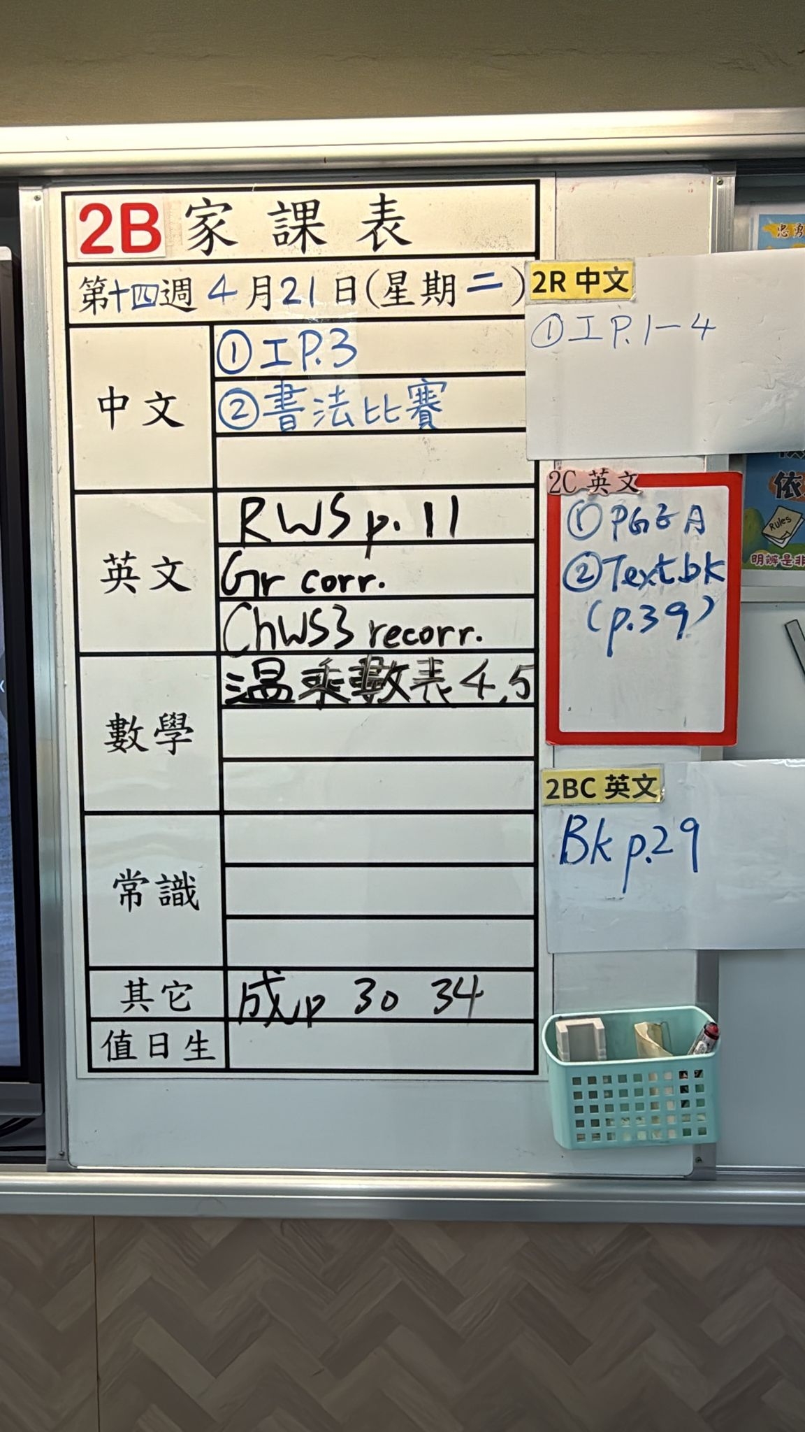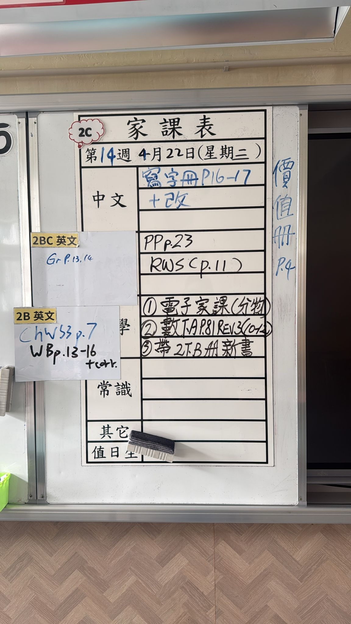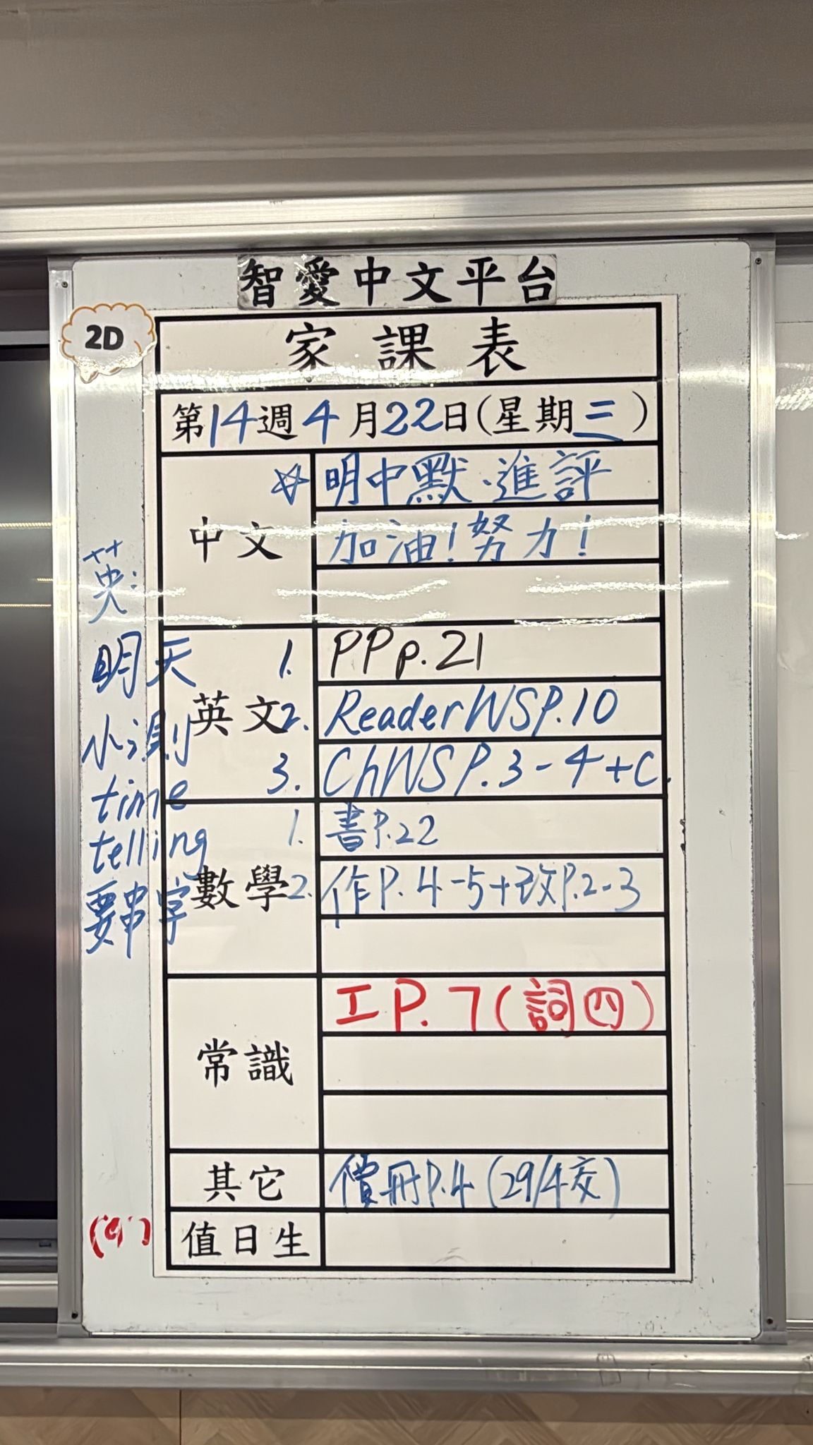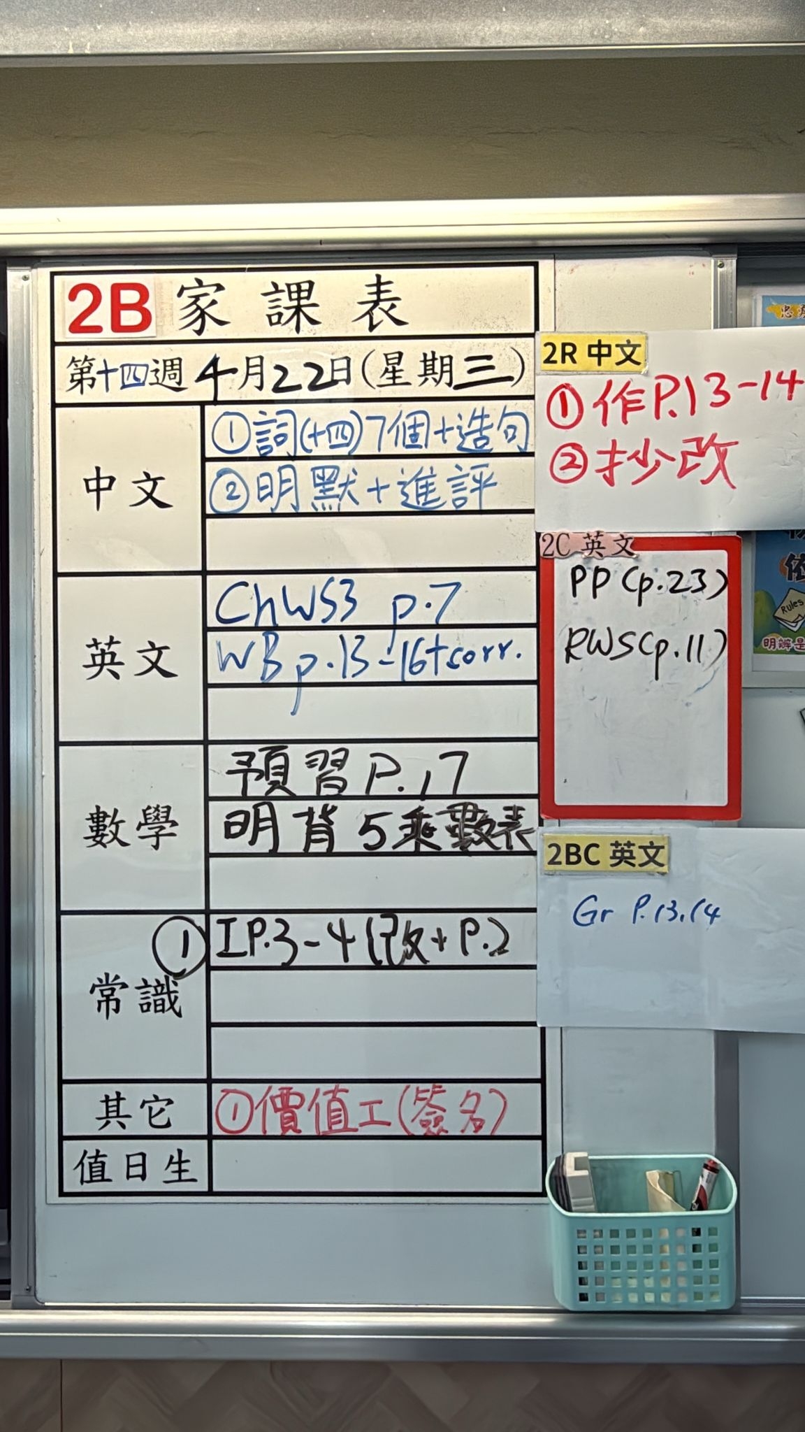 2026-04-22 週三發出之家課: