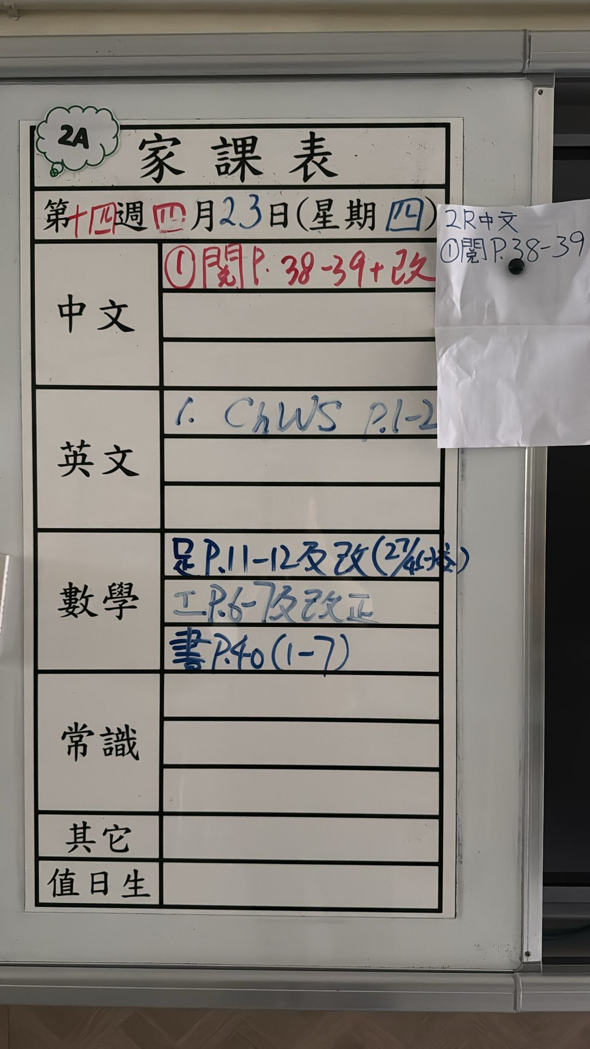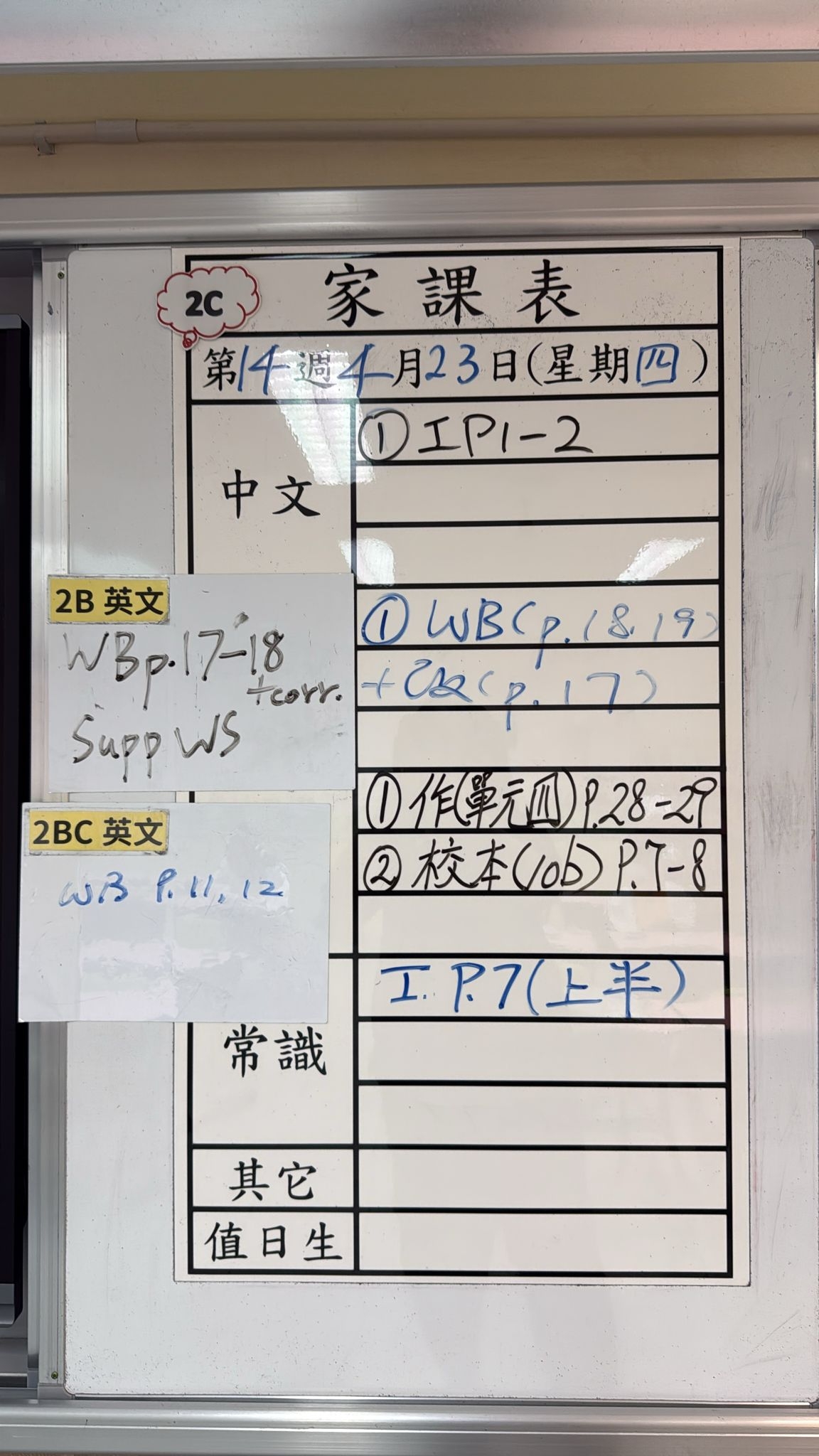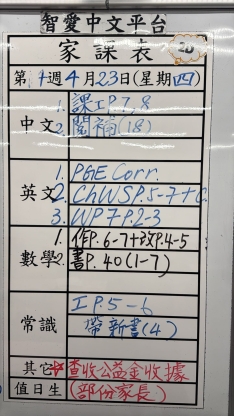 2026-04-23 週四發出之家課: