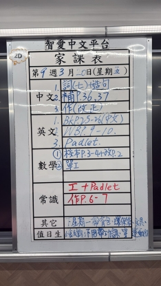 2026-03-09 週一發出之家課: