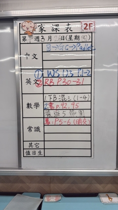 2026-03-04 週三發出之家課: