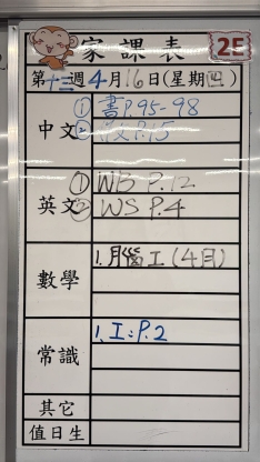 2026-04-16 週四發出之家課: