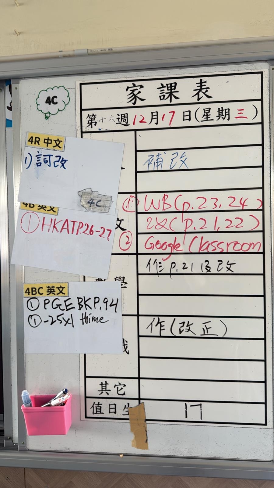 2025-12-17 週三發出之家課: