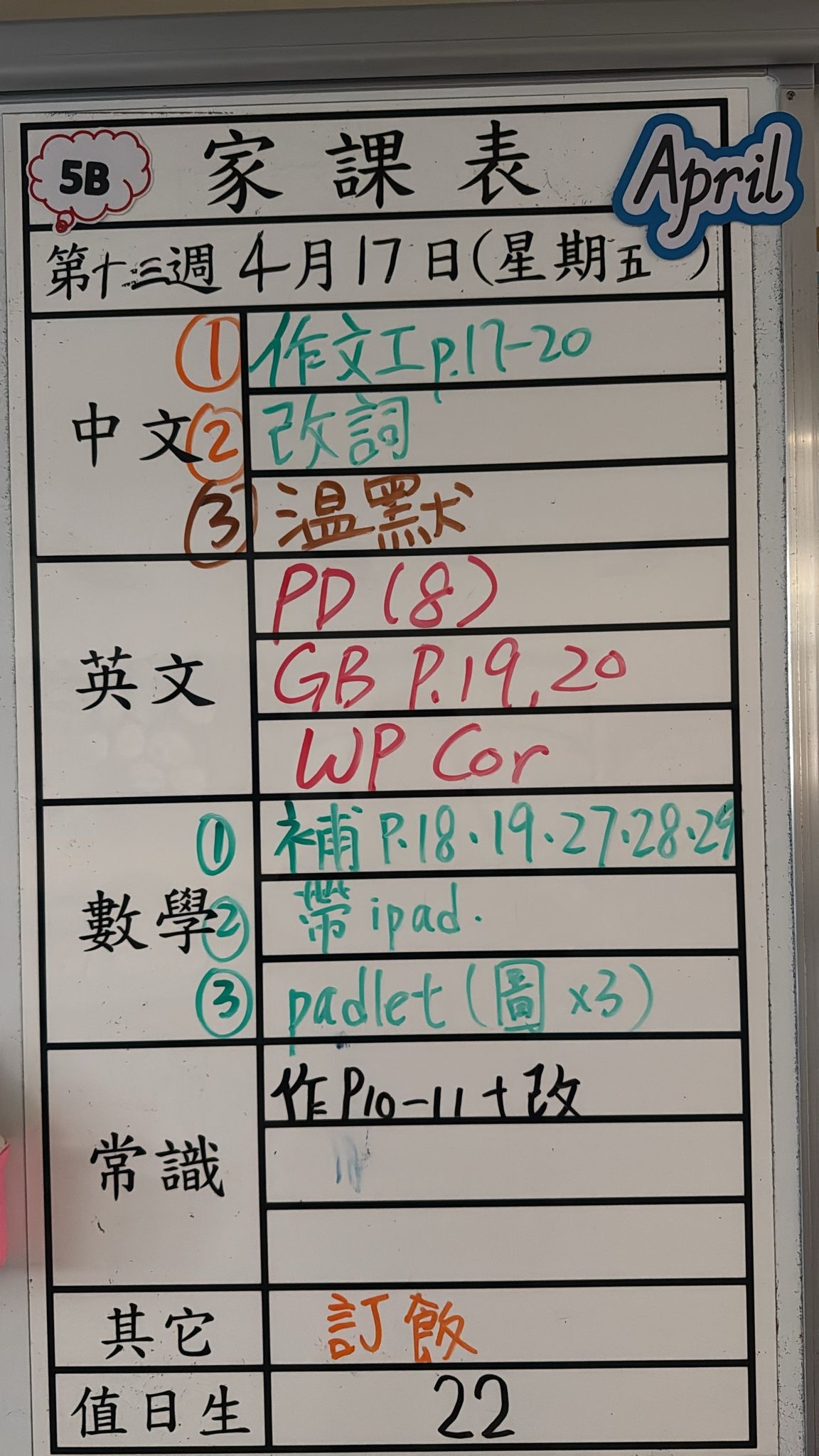 家課日誌